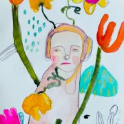 Ik werk in verschillende schetsboeken te gelijkertijd. In grote formaten (A3) maar ook in kleinere formaten. Ik koop ze maar maak ze soms ook zelf. Ik neem ze graag mee op stap, ideaal wanneer je ergens moet wachten zoals in de wachtzaal in het ziekenhuis of huisarts. Maar ook bij een uitstapje of op reis. Maar ook thuis in mijn ateliertje of zelfs in de zetel worden ze gebruikt.