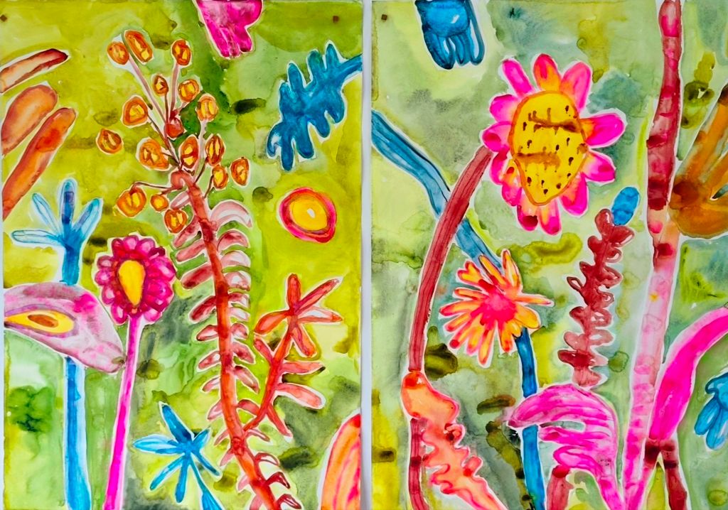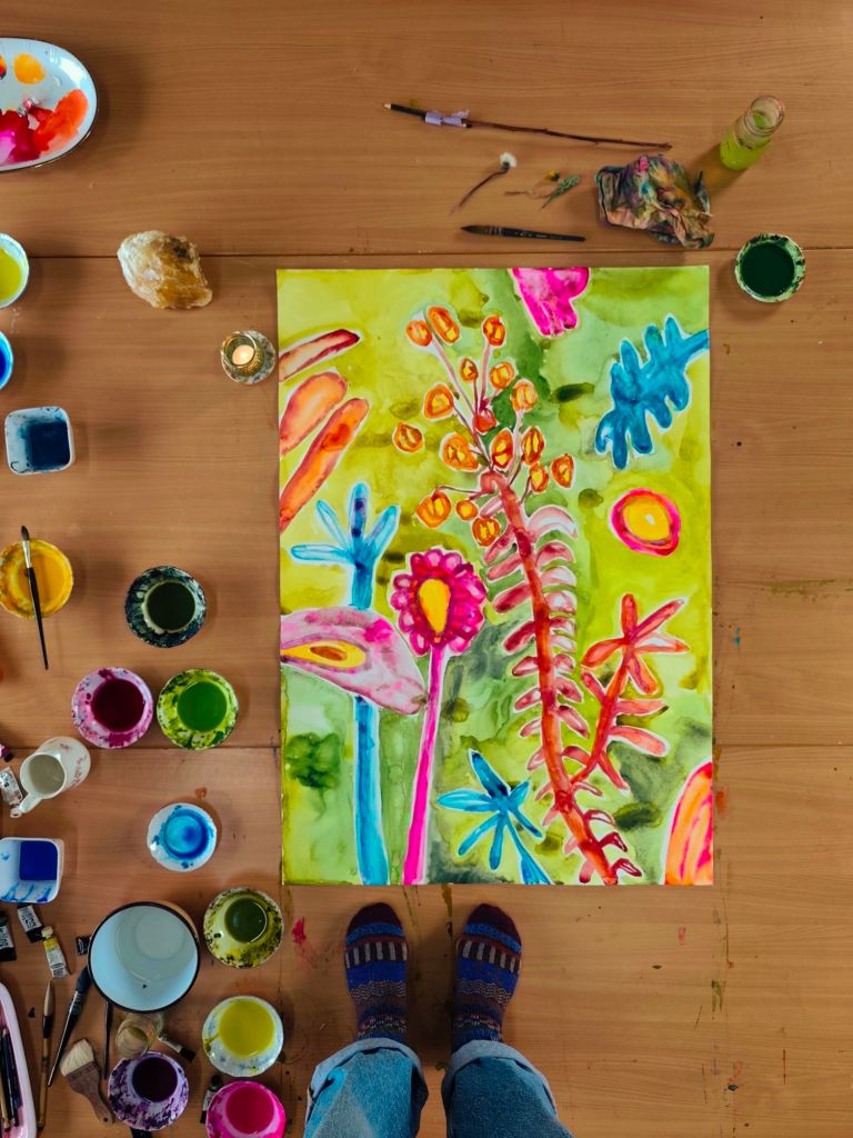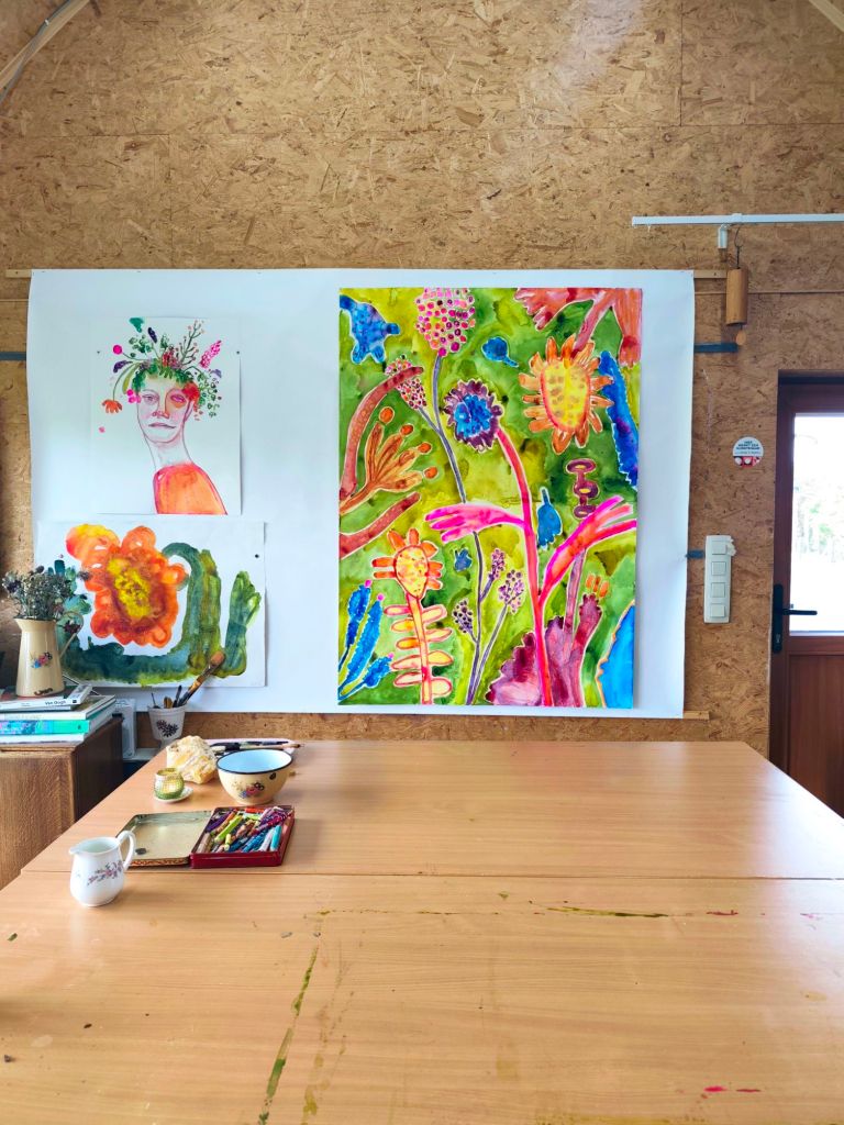 Dat gevoel komt ook naar boven wanneer ik schilder. Nog meer wanneer ik schilder vanuit die emotie en vanuit die herinneringen. Die momenten vloeien als het ware uit mijn penseel. De kleuren, het aquarel dat vloeit,…het vertaalt mijn gevoel van toen en nu.
