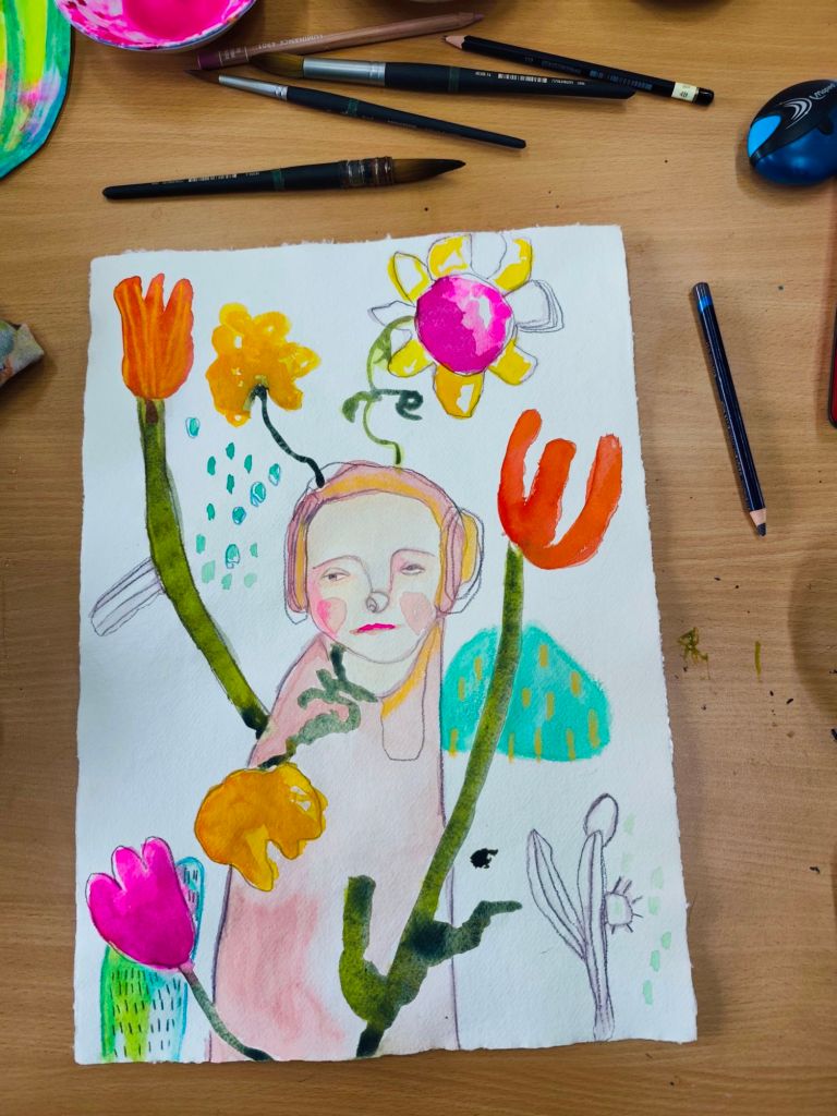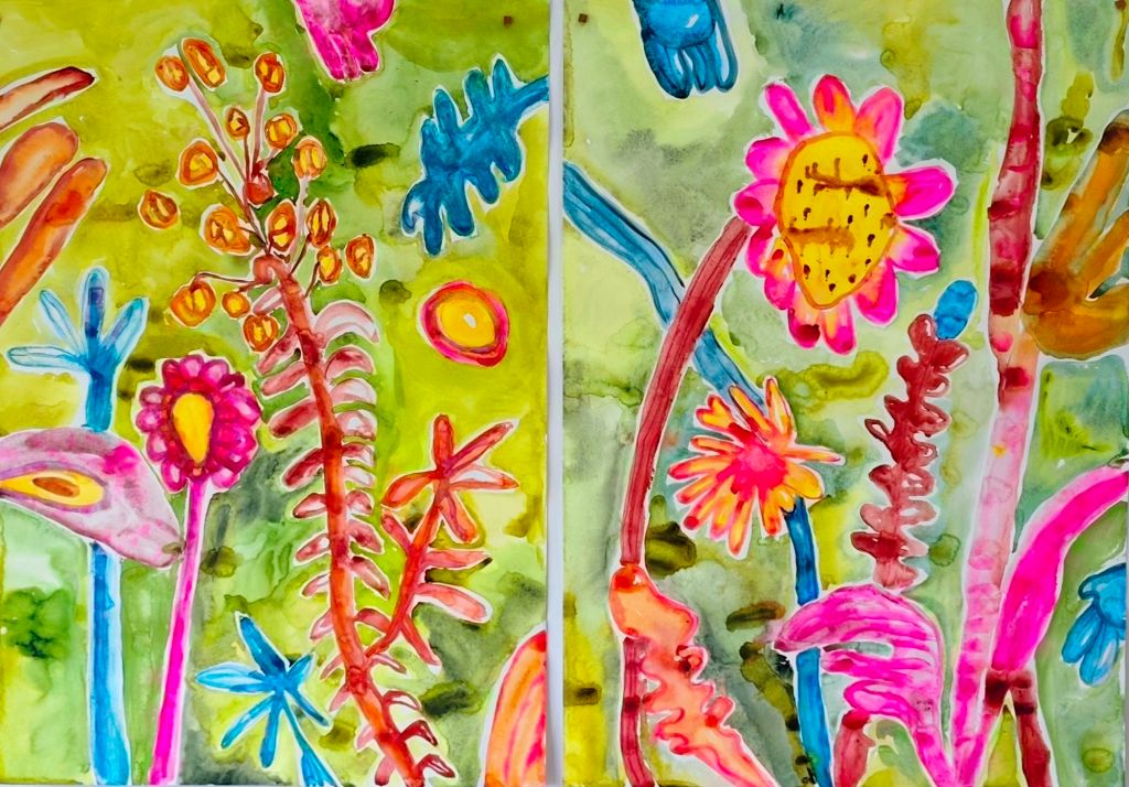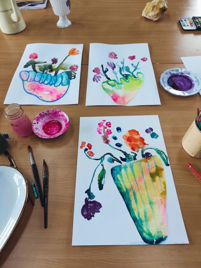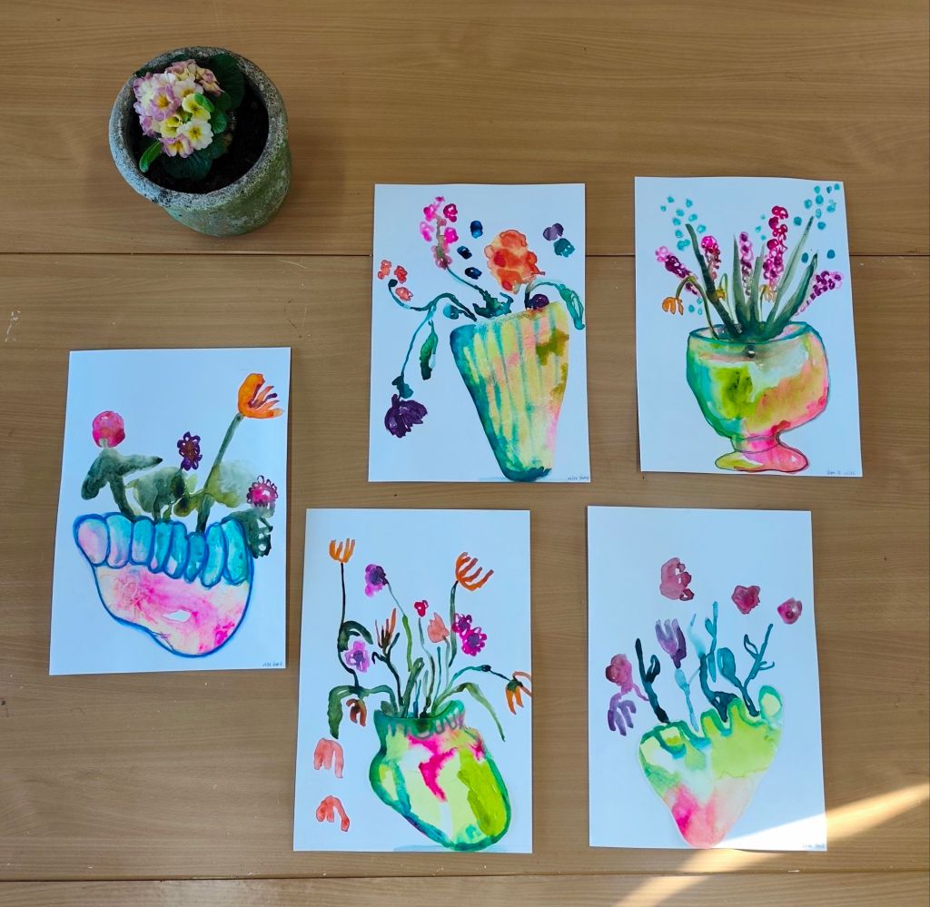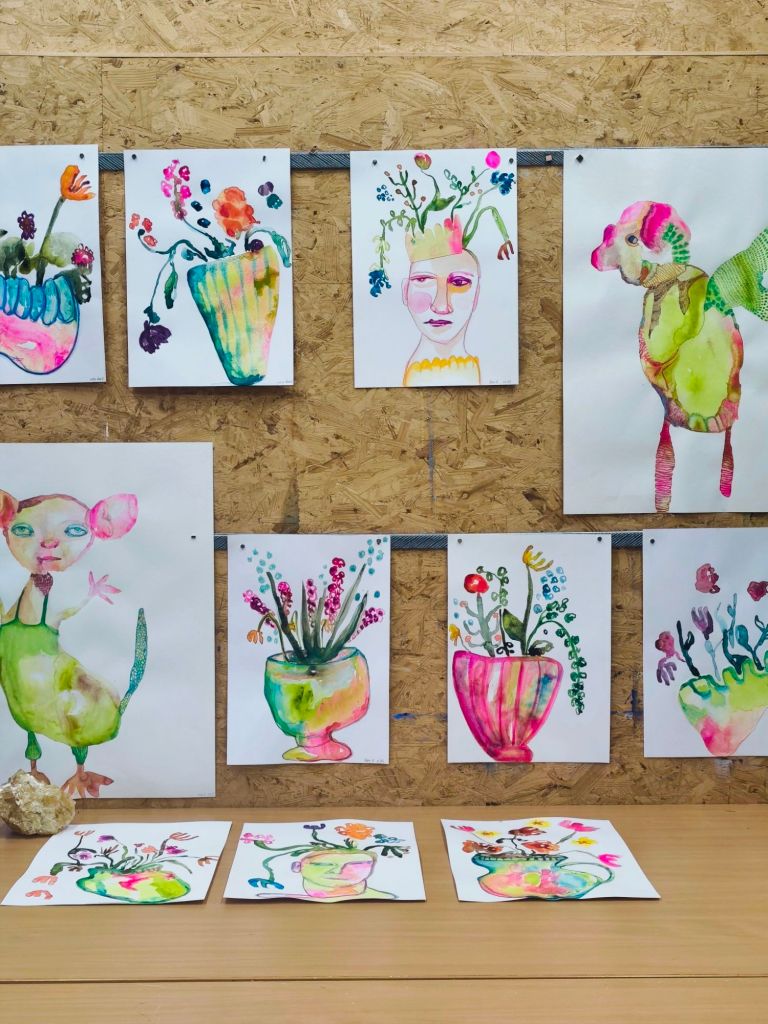 Vero in wonderland, een voelbare en vloeibare werkelijkheid. Het speelse, het intuïtieve, het dromen,…bloemen die groeien in wiebelende bloempotten en vazen, bloemen die groeien uit mijn hoofd. De grens tussen werkelijkheid en droom vervaagt. Inspiratie, een onuitputtelijke bron. Ik luister en verbeeld me.