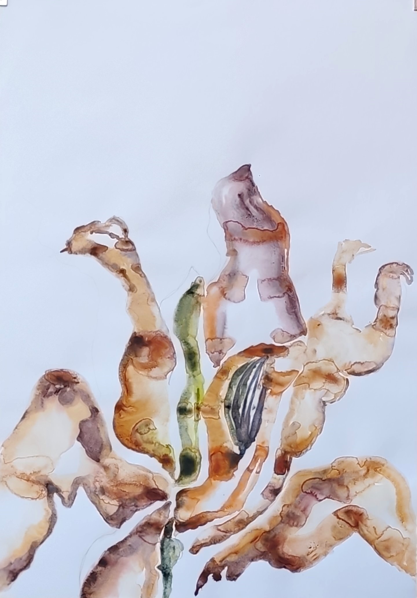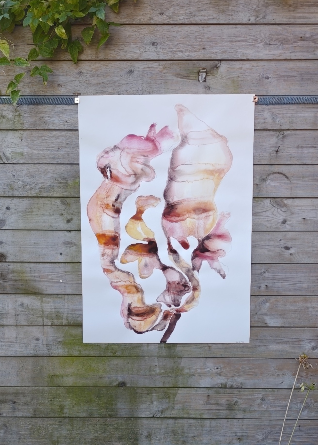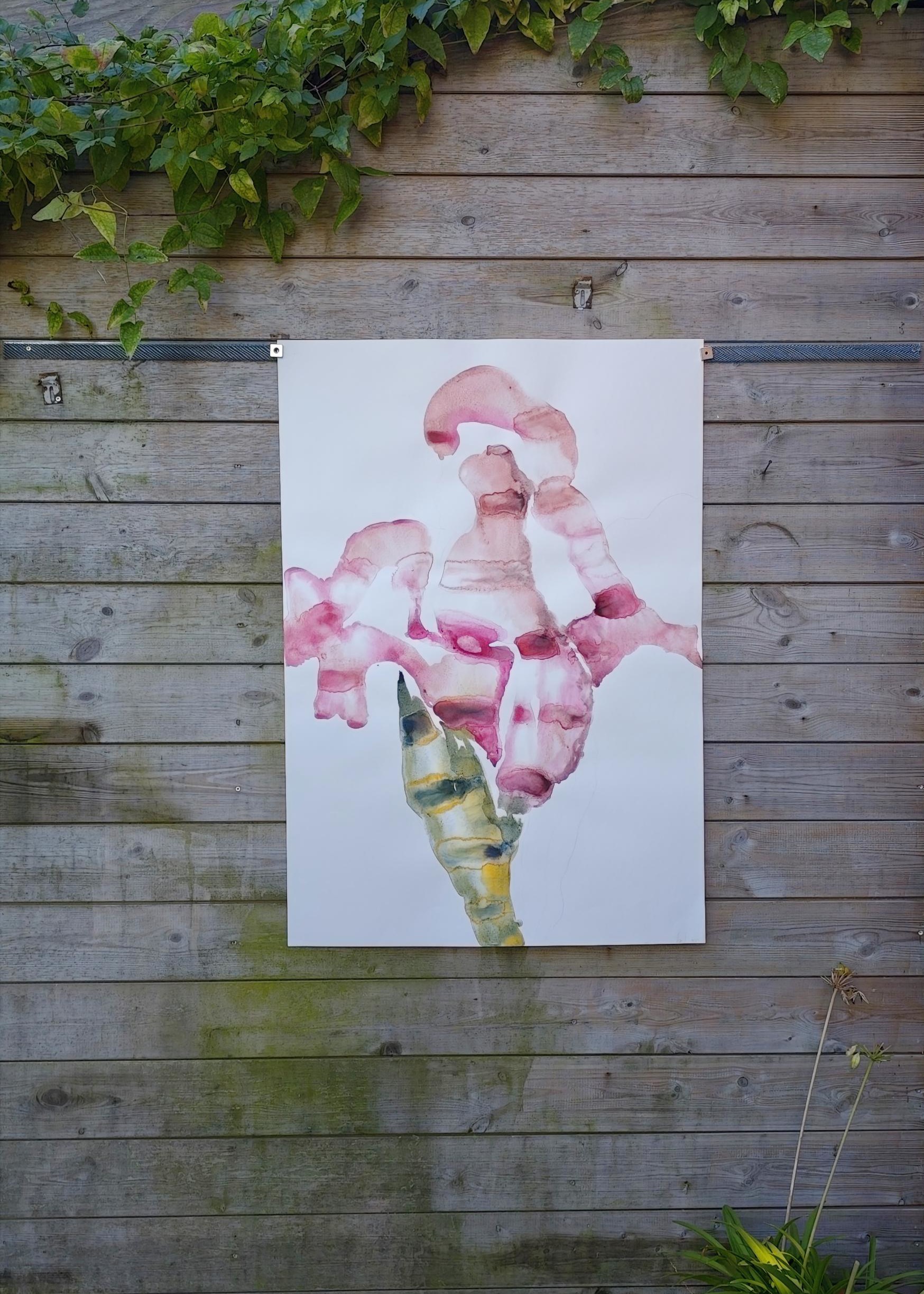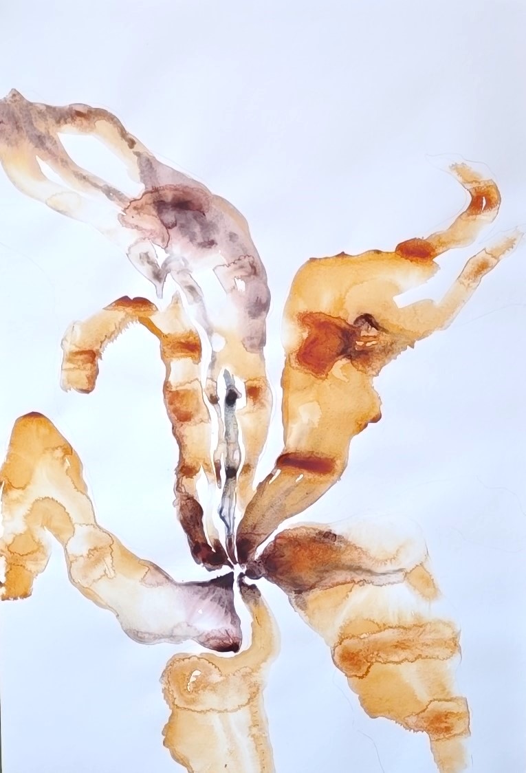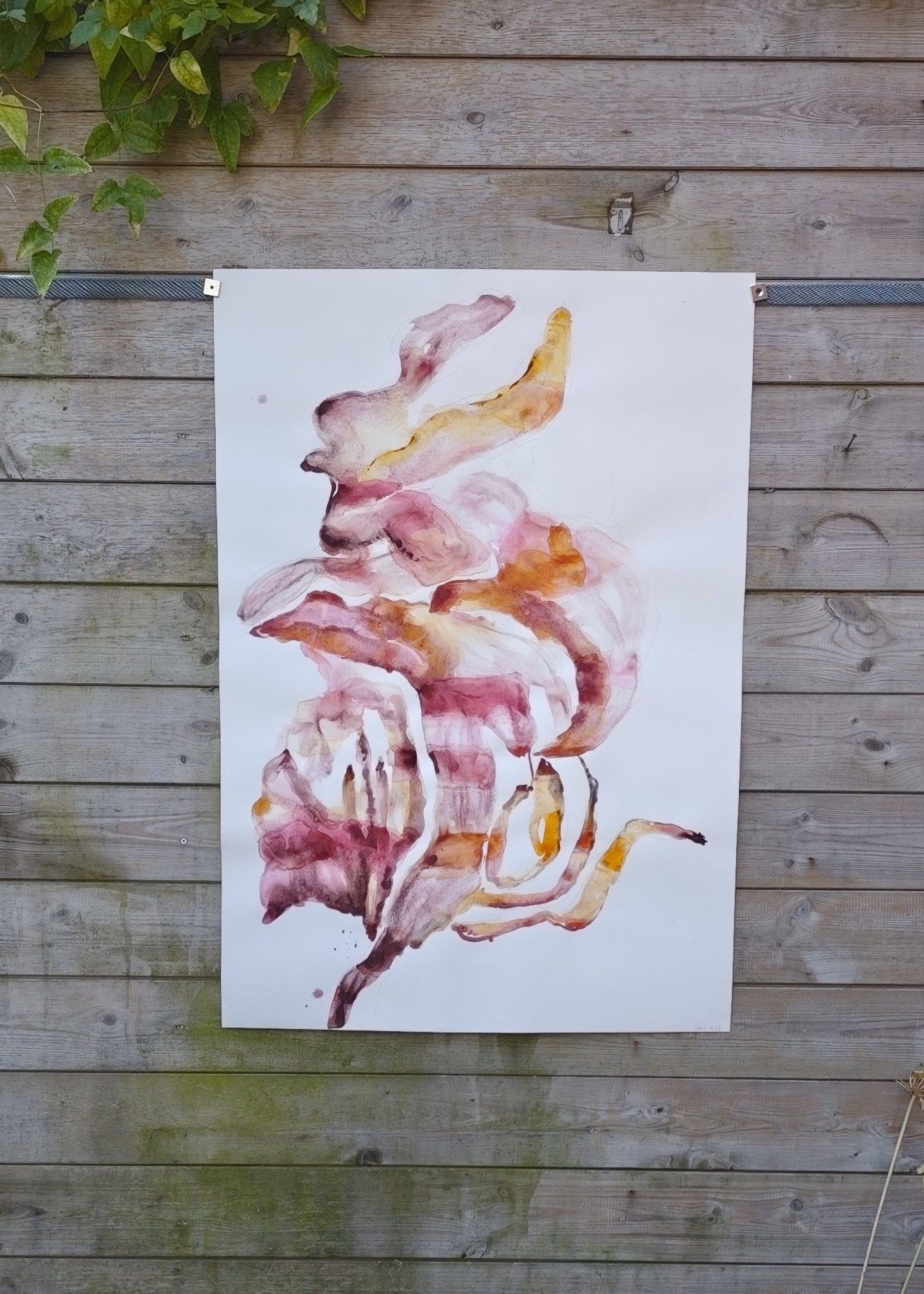 Deze reeks symboliseert vergankelijkheid, kwetsbaarheid en kracht van de natuur. De aquarellen, geïnspireerd op bloemen en planten, tonen de zoektocht tussen controle en loslaten. Het samenspel tussen pigment en water symboliseert het proces van overgave — het toelaten van onze natuurlijke beweging.