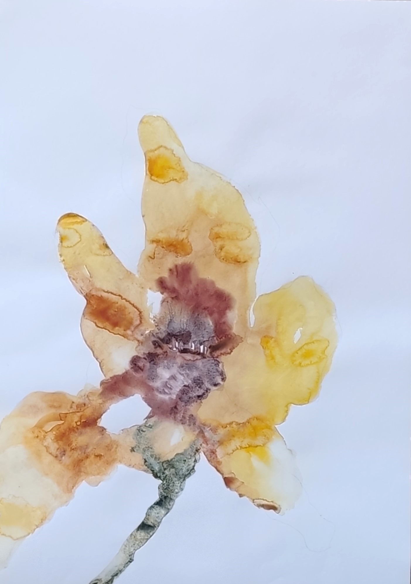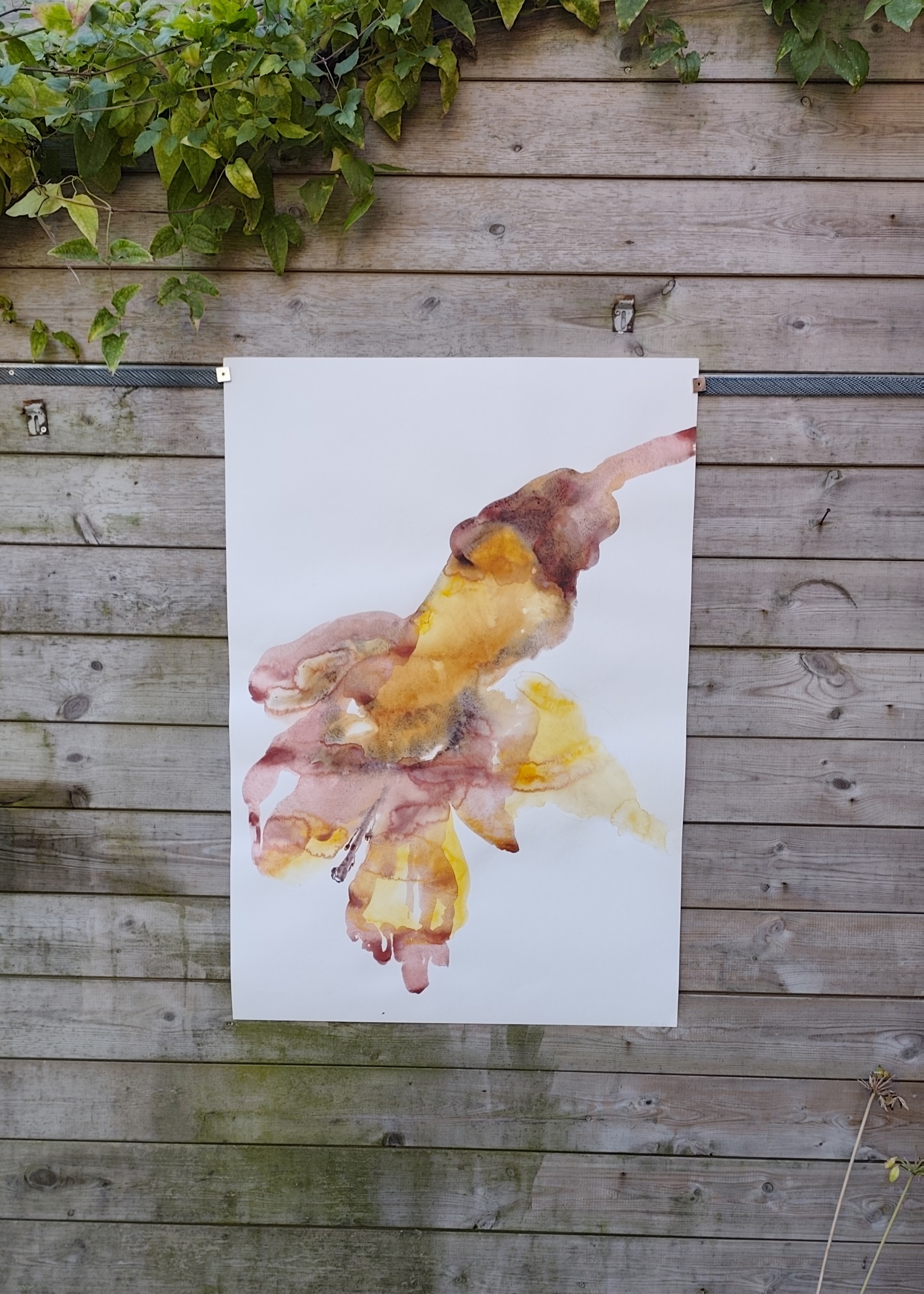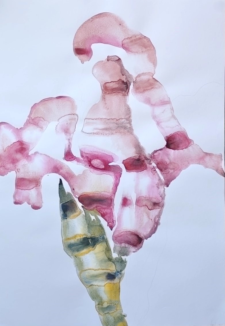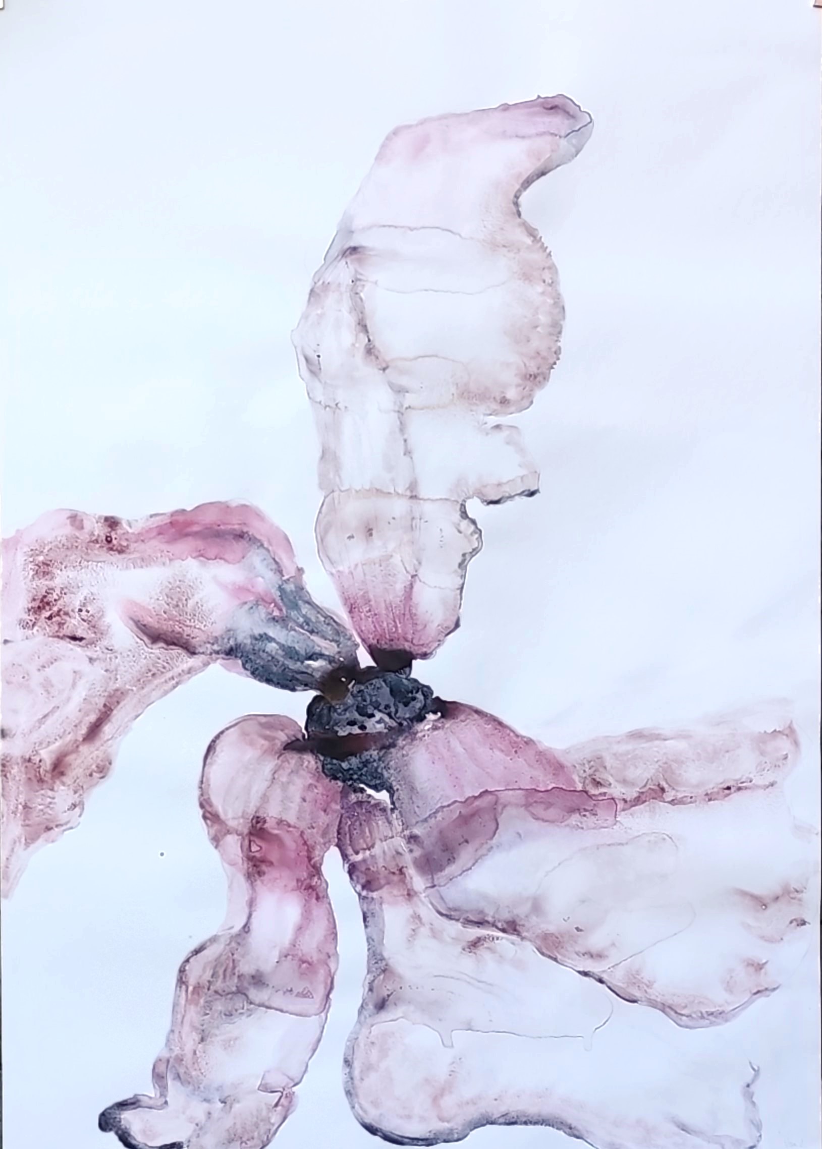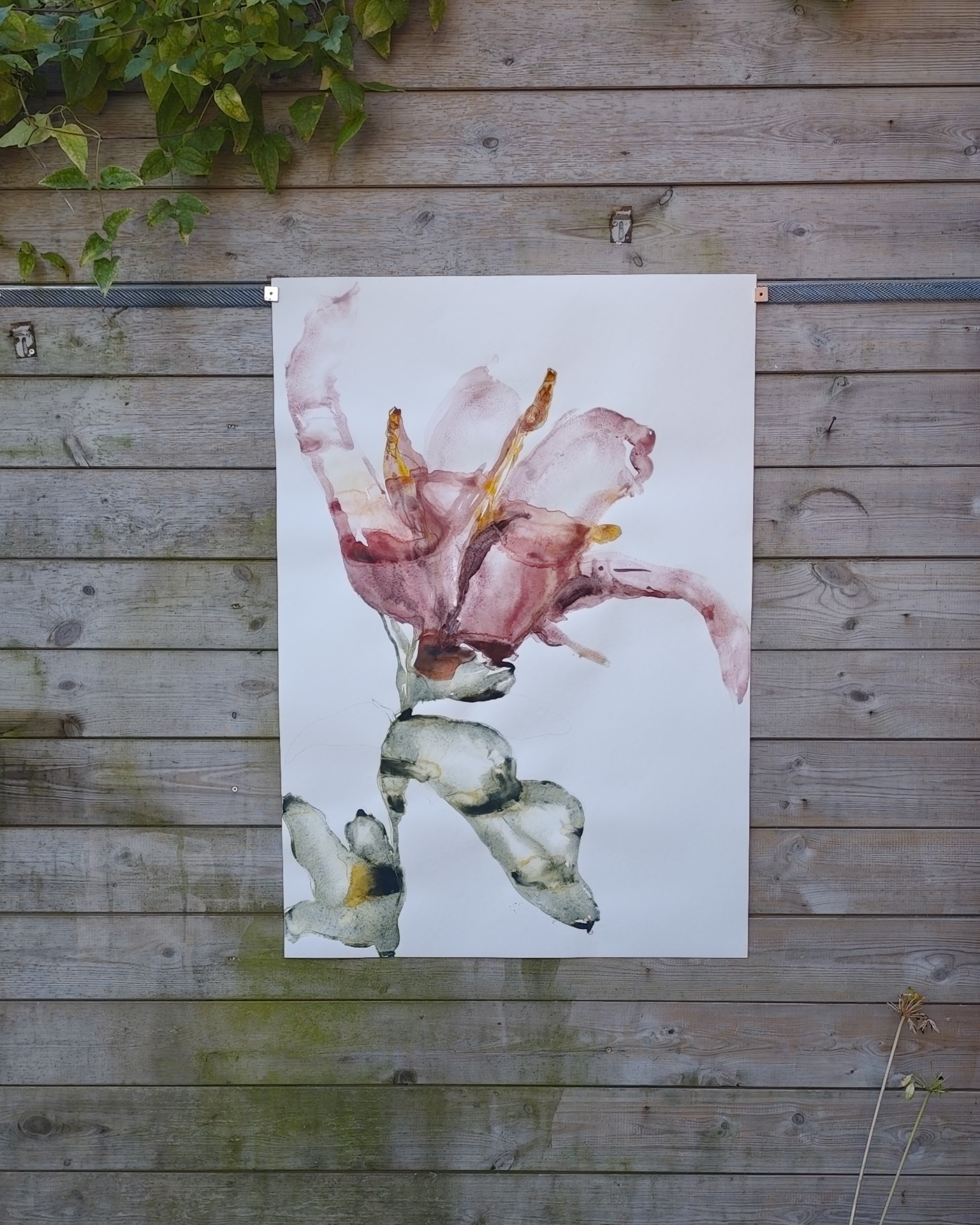 Deze reeks symboliseert vergankelijkheid, kwetsbaarheid en kracht van de natuur. De aquarellen, geïnspireerd op bloemen en planten, tonen de zoektocht tussen controle en loslaten. Het samenspel tussen pigment en water symboliseert het proces van overgave — het toelaten van onze natuurlijke beweging.