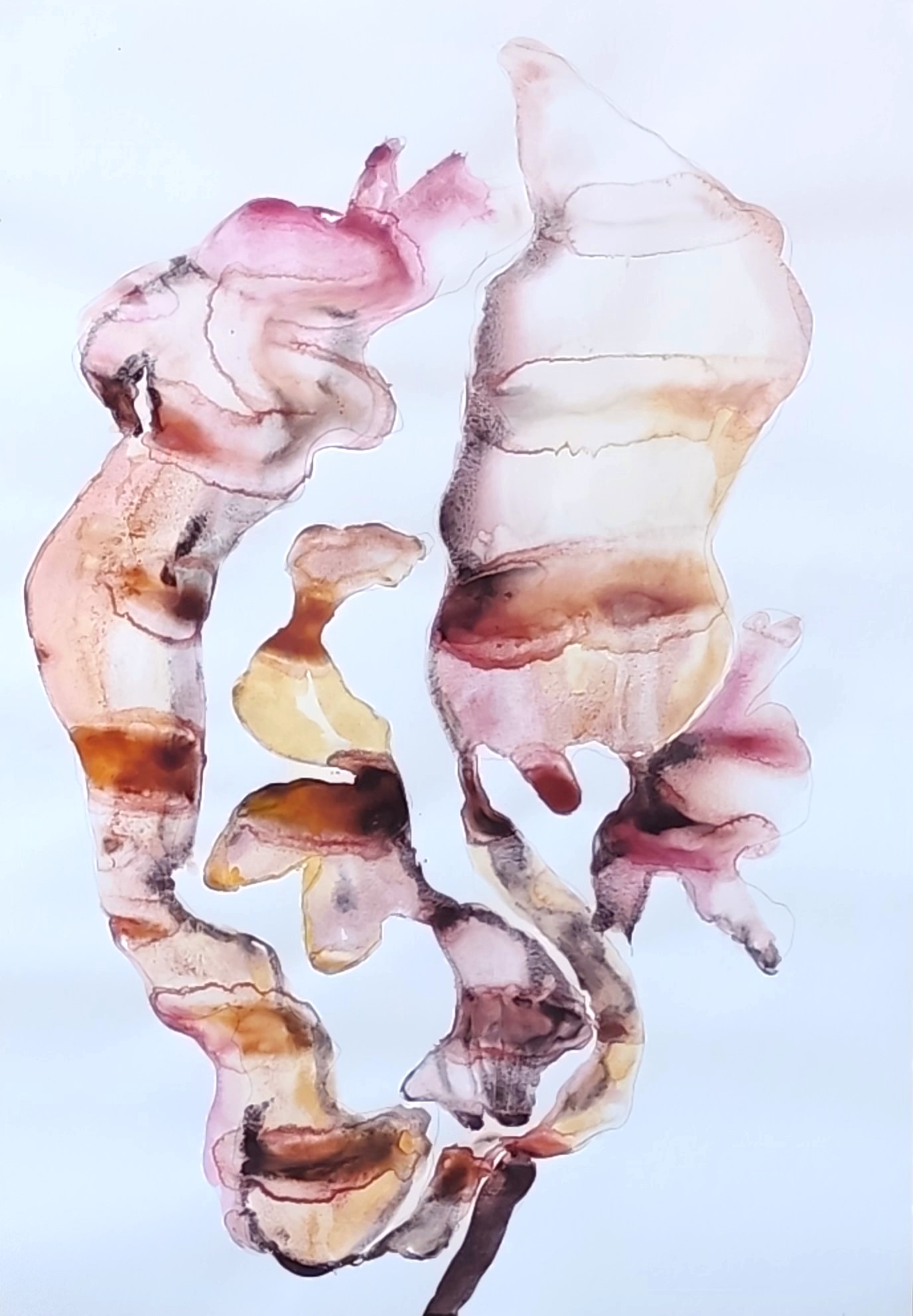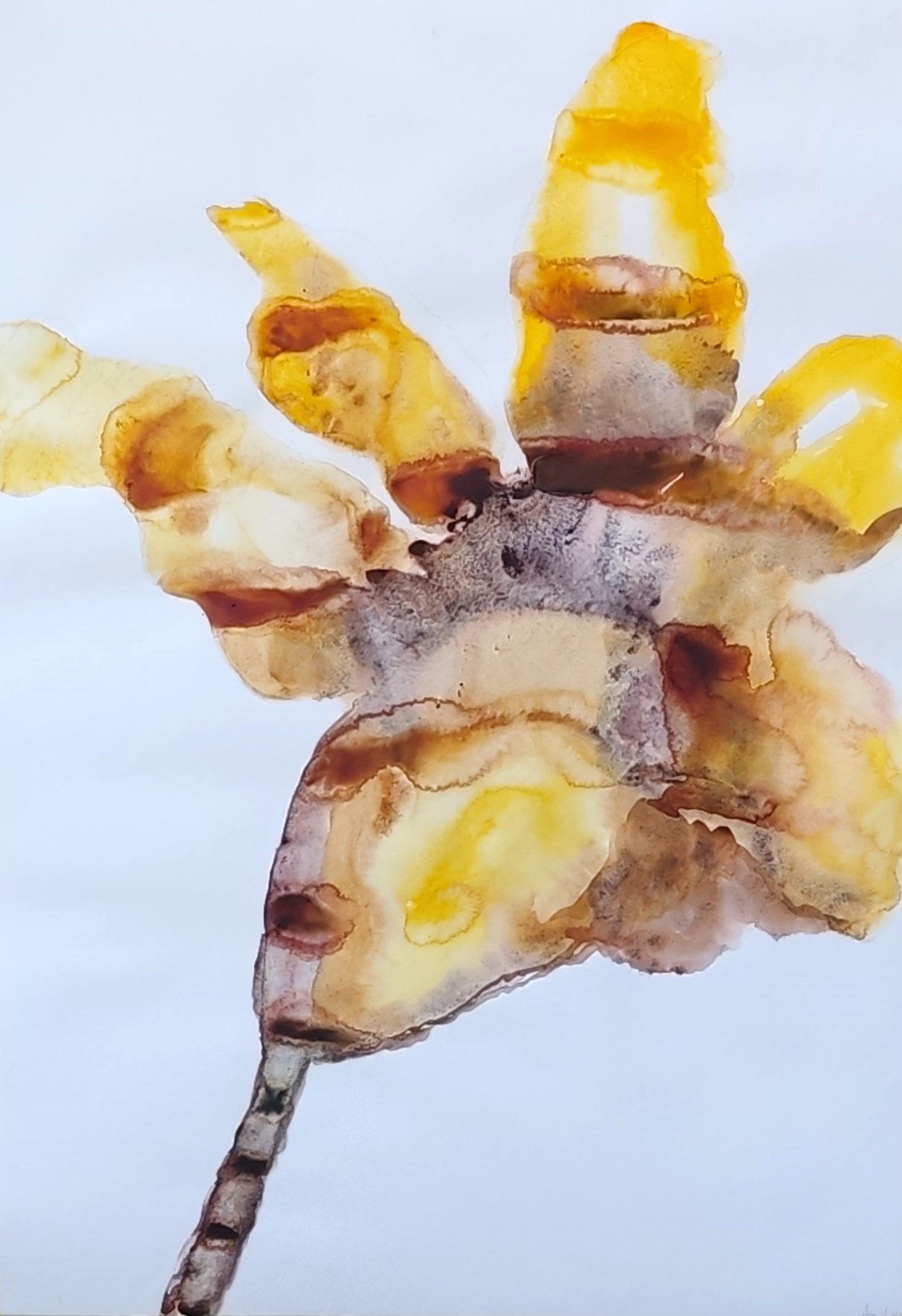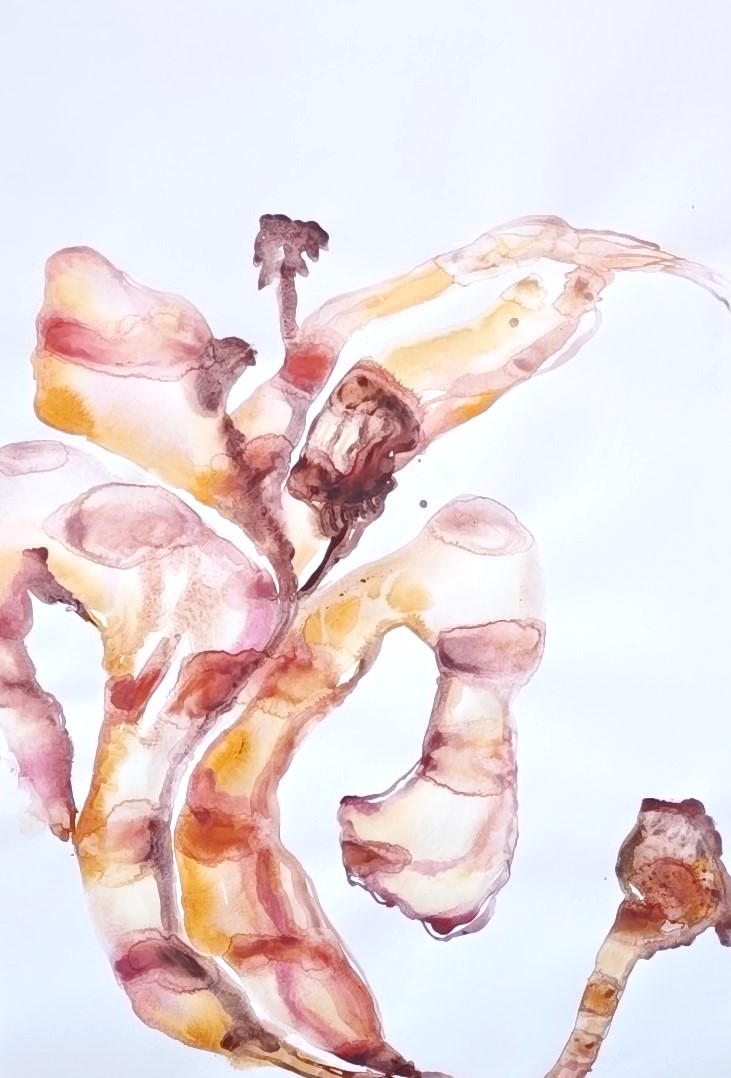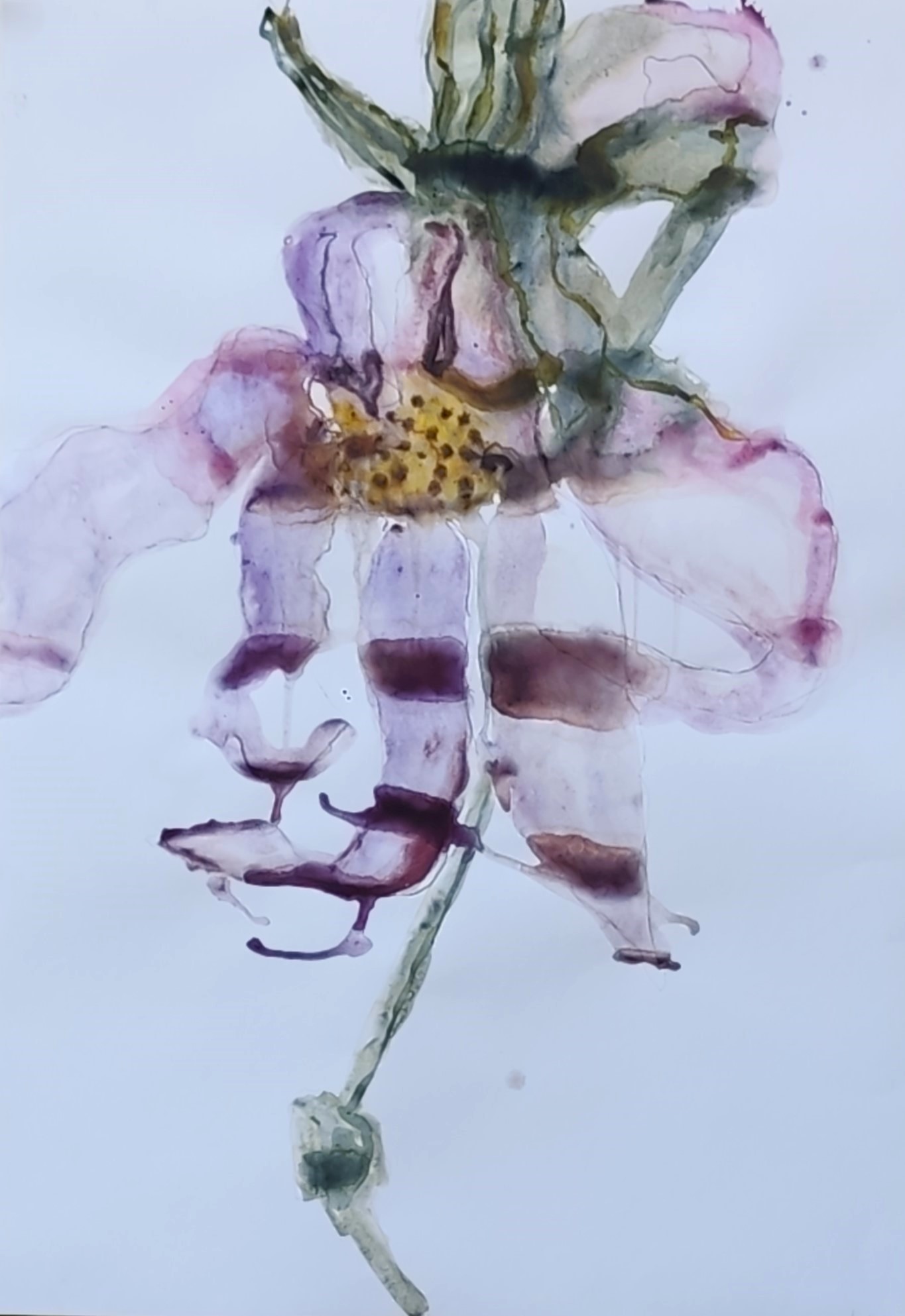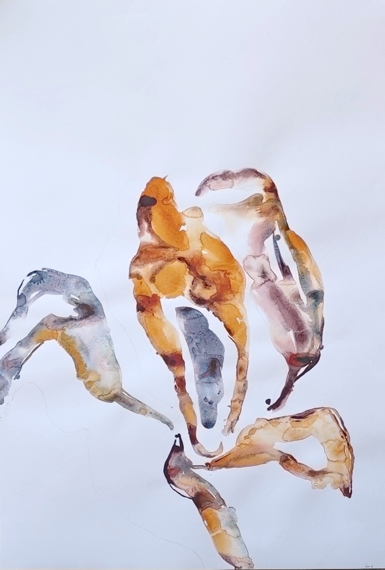 Deze reeks symboliseert vergankelijkheid, kwetsbaarheid en kracht van de natuur. De aquarellen, geïnspireerd op bloemen en planten, tonen de zoektocht tussen controle en loslaten. Het samenspel tussen pigment en water symboliseert het proces van overgave — het toelaten van onze natuurlijke beweging.