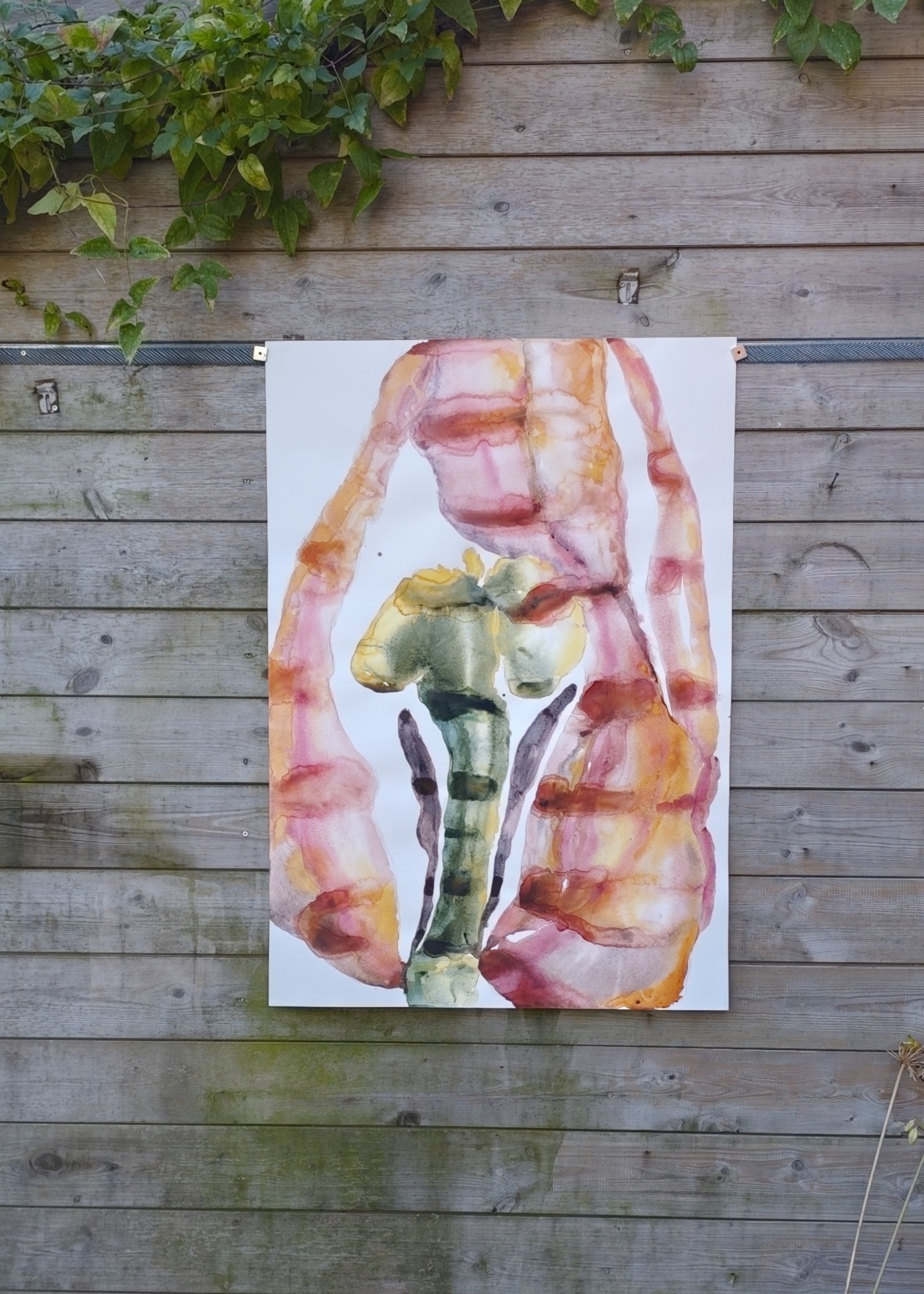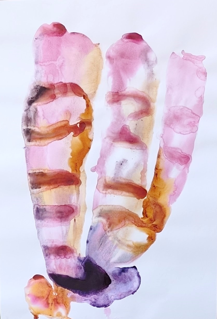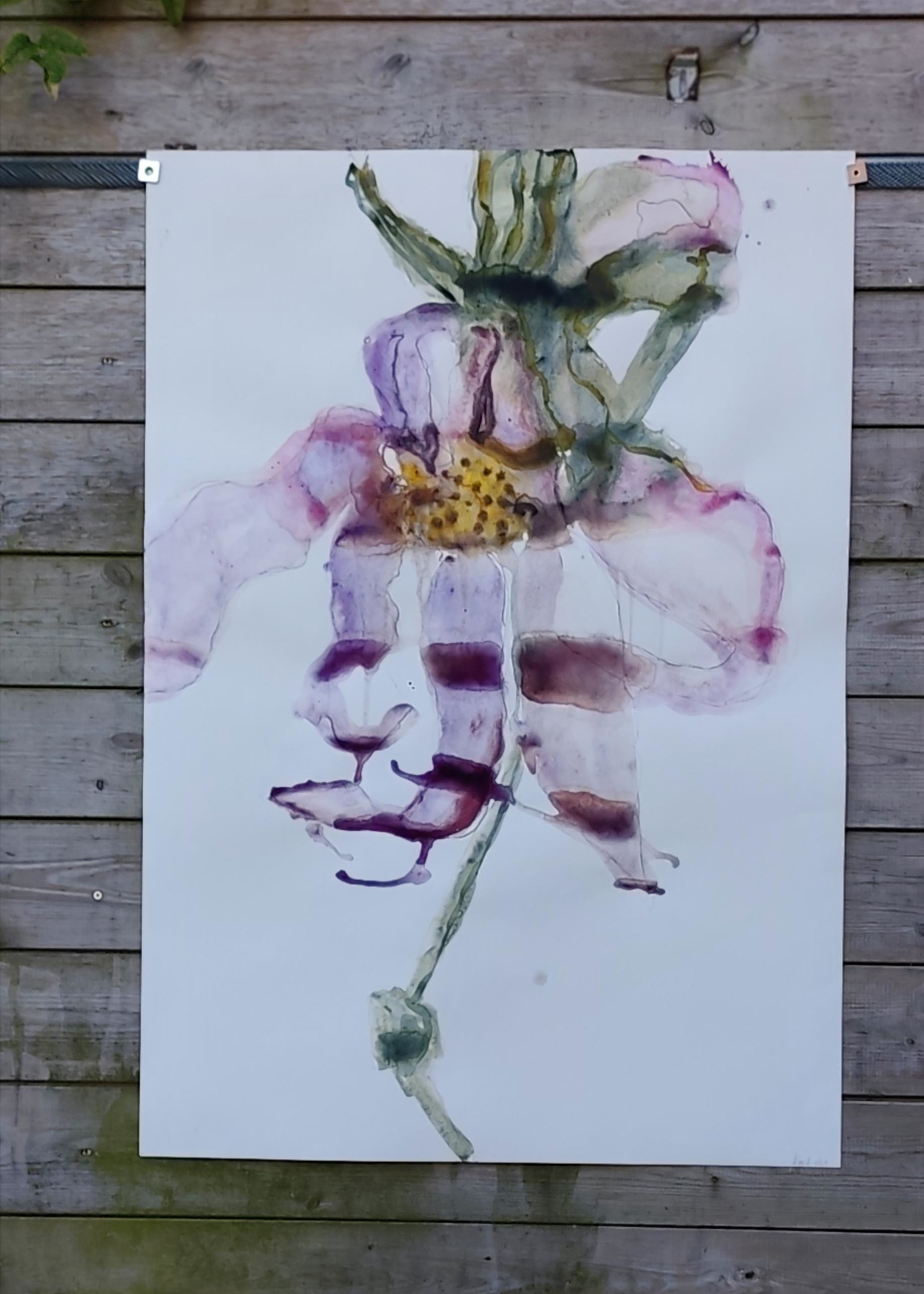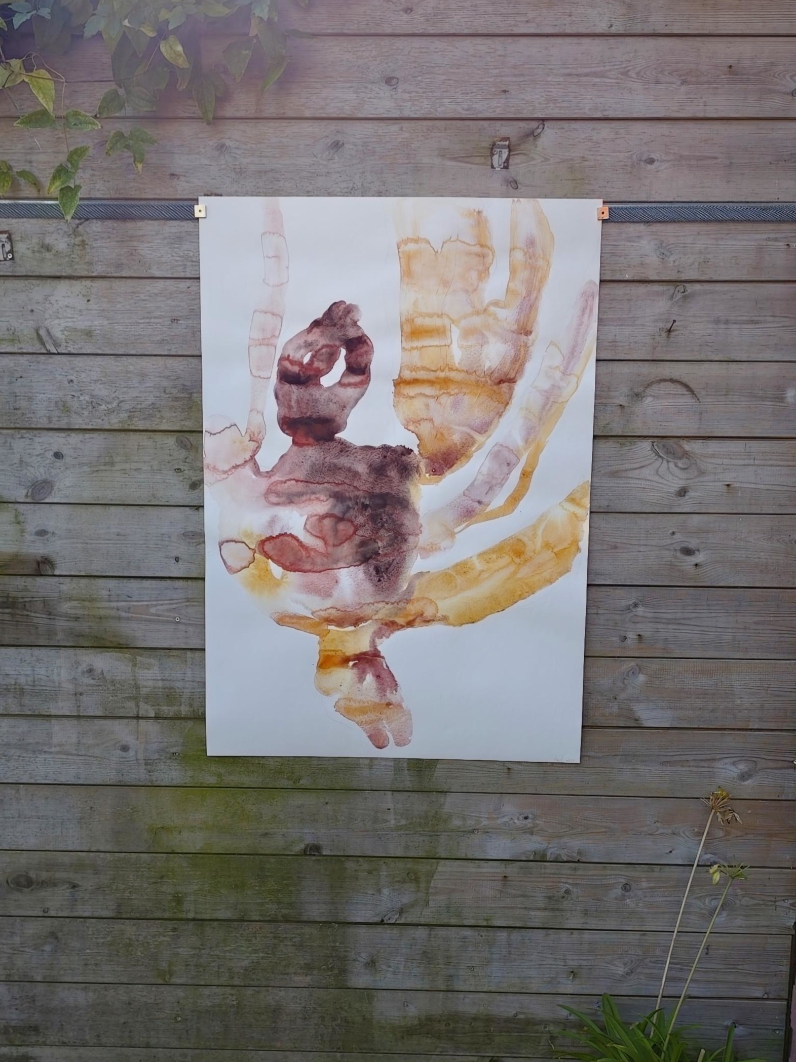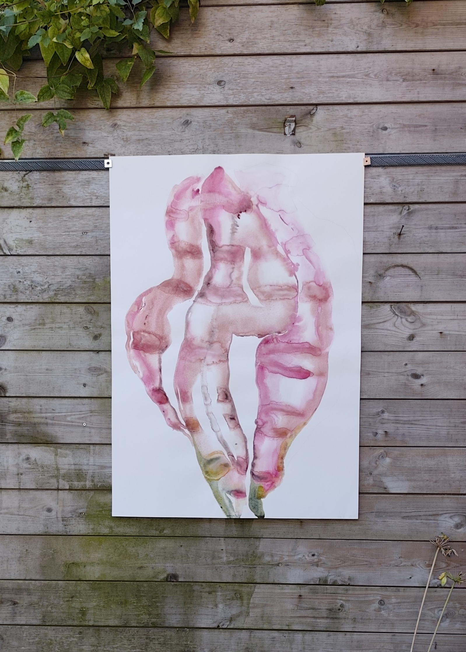 Deze reeks symboliseert vergankelijkheid, kwetsbaarheid en kracht van de natuur. De aquarellen, geïnspireerd op bloemen en planten, tonen de zoektocht tussen controle en loslaten. Het samenspel tussen pigment en water symboliseert het proces van overgave — het toelaten van onze natuurlijke beweging.