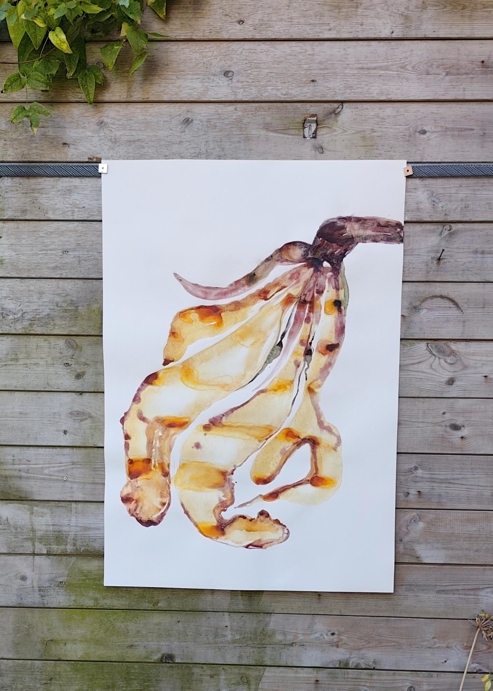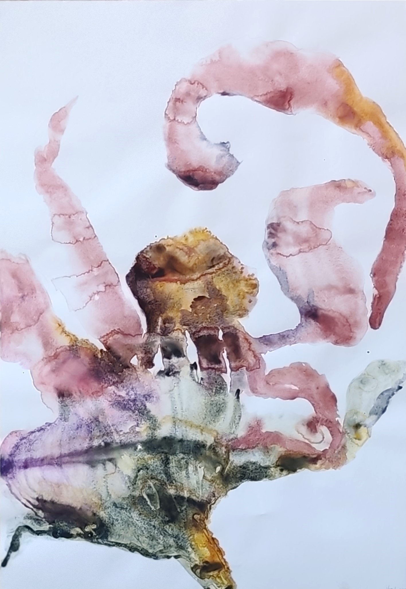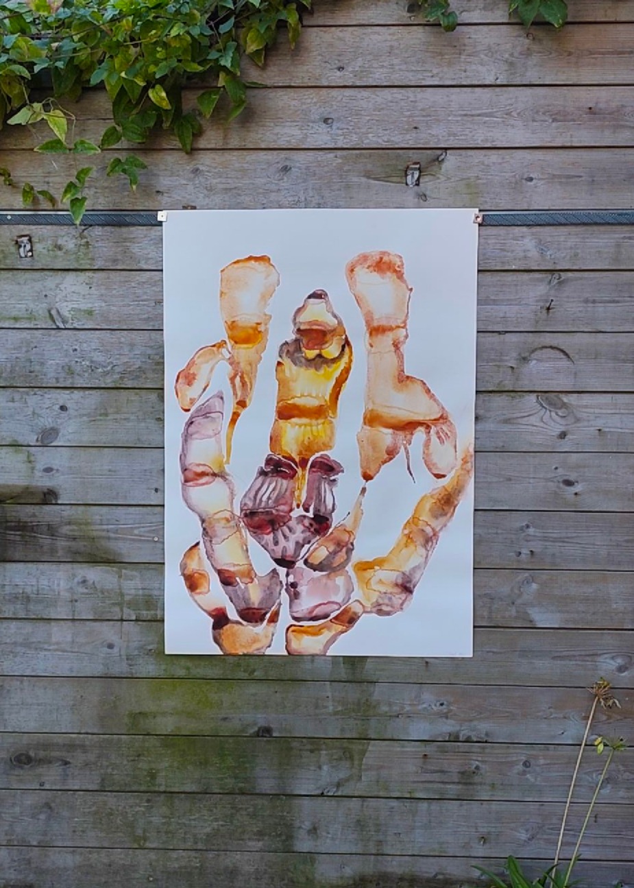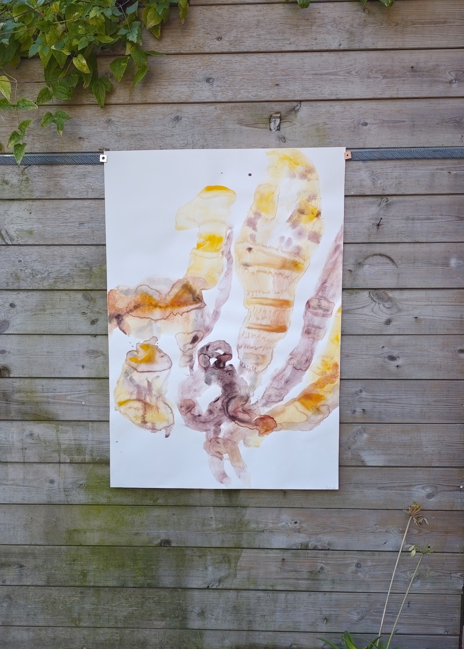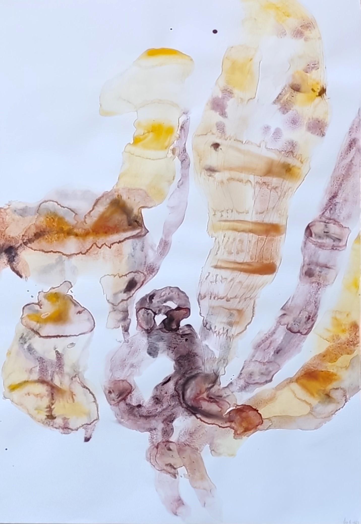Deze reeks symboliseert vergankelijkheid, kwetsbaarheid en kracht van de natuur. De aquarellen, geïnspireerd op bloemen en planten, tonen de zoektocht tussen controle en loslaten. Het samenspel tussen pigment en water symboliseert het proces van overgave — het toelaten van onze natuurlijke beweging.